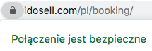 Goście przeglądający Twoją wizytówkę w IdoSell Booking zobaczą w przeglądarce kłódkę przy adresie domeny, która oznacza, że treści na stronie są zabezpieczone.